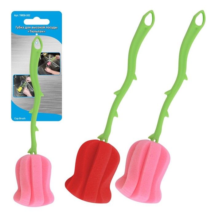 Губка для посуды 25,5см для высокой посуды Тюльпан увет микс