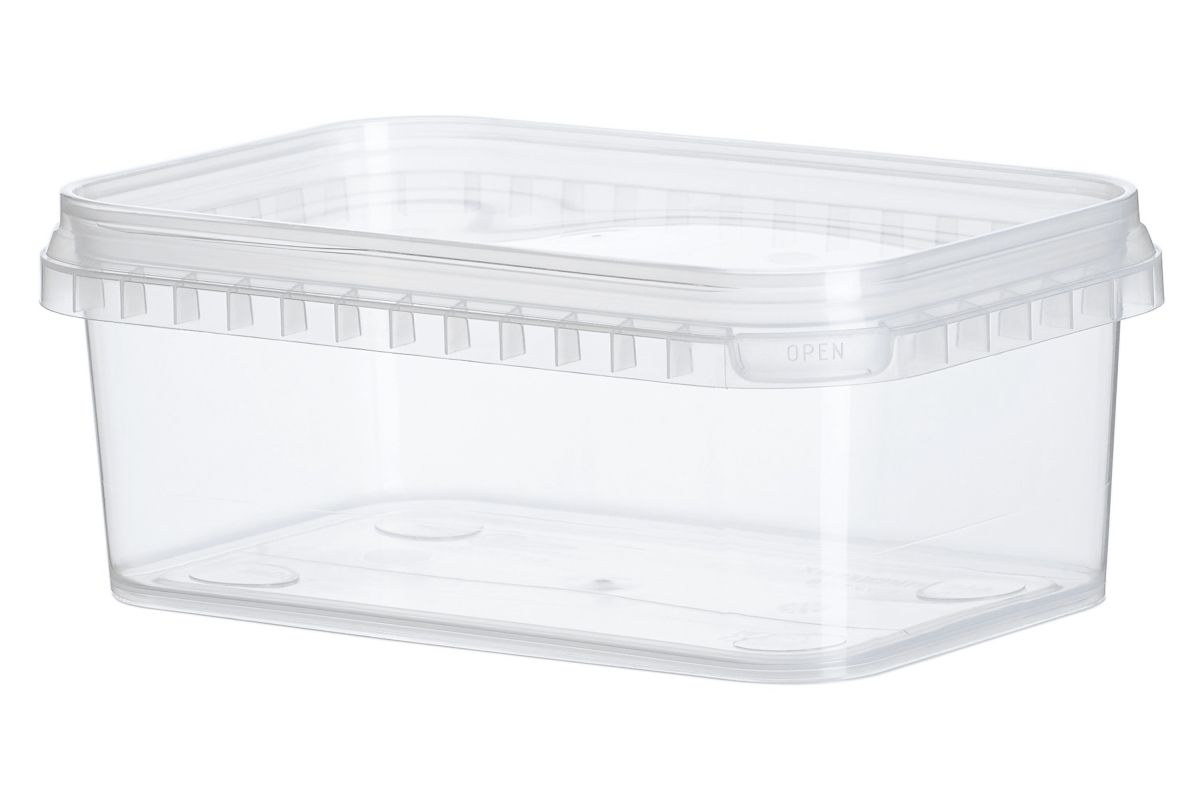 Контейнер прямоугольный вместимостью 1,0л с крышкой. Верхний диаметр 191мм*129мм, нижний диаметр 176мм*110мм. Высота с крышкой 60мм. Оснащен короной жесткости. Имеет пломбу для контроля вскрытия. В комплект поставки входит полипропиленовая гладкая крышка. Контейнер используется в качестве тары для фасовки, хранения и транспортировки пищевых и не пищевых продуктов. Идеальная емкость для упаковки морепродуктов, молочных продуктов, кондитерских изделий и кулинарии, мясных или рыбных полуфабрикатов, предметов для детского творчества (пластилин и пластические массы), метизов и крепежа (шурупы и болты).