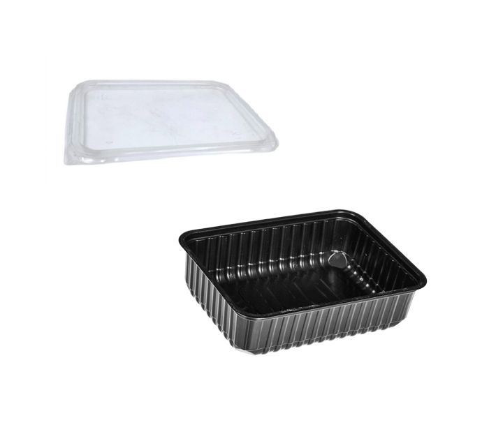 Контейнер 750мл прямоугольный 179*132*44 черный + КРЫШКА прозр