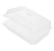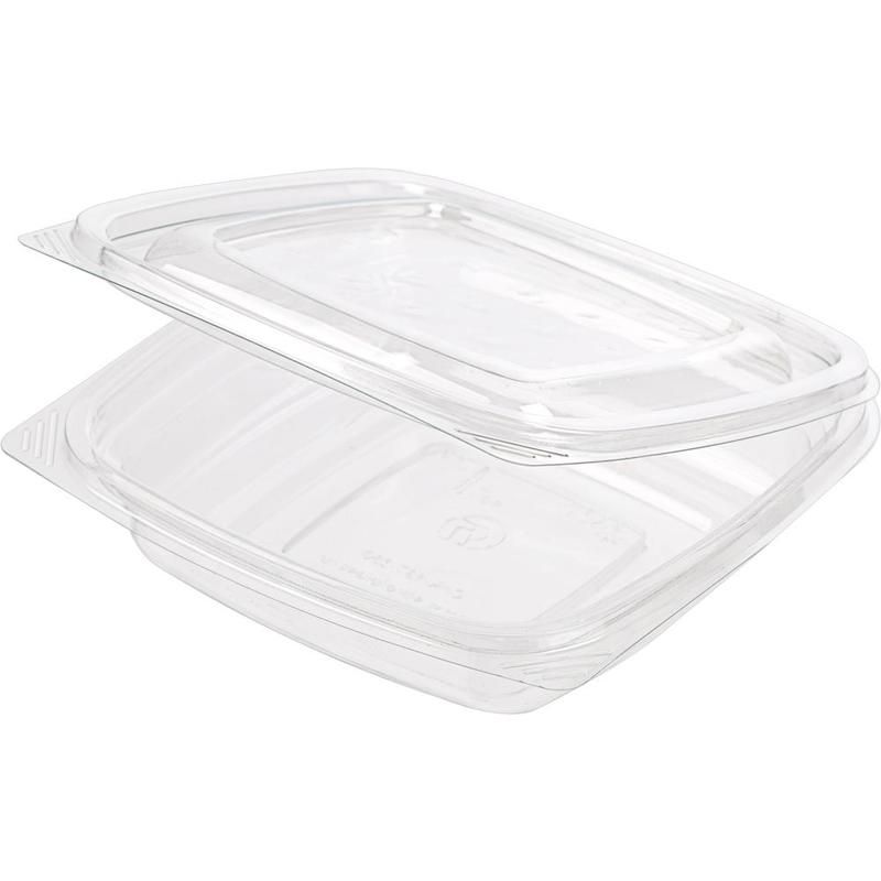 Прямоугольный контейнер с неразъемной крышкой и угловыми ребрами жесткости (не снижают прозрачность, а следовательно обзор продукта). Контейнер объемом 250мл имеет следующие размеры - 137мм*142мм*34мм. Крышка контейнера оснащена язычком для удобного открытия и закрытия контейнера. Контейнер изготовлен из материала ПЭТ (полиэтилентерефталат), поэтому не подходит для разогрева в СВЧ и горячих продуктов. Предназначен для салатов, десертов, холодных закусок, сладостей и фруктов.