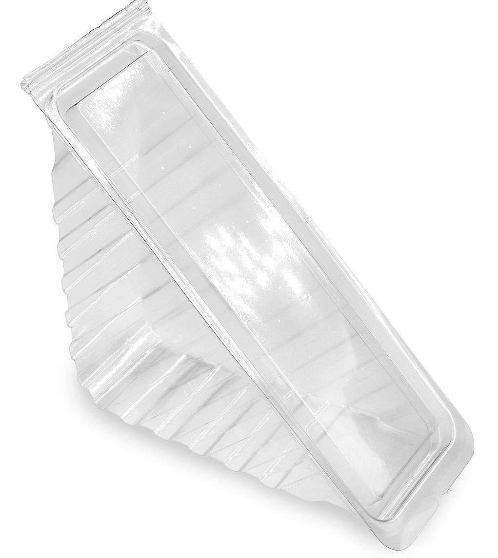 Прозрачный четырехслойный контейнер треугольной формы с совмещенной откидной крышкой. Тип замка - внутренний контурный. Особенностью таких замков является плотно прилегающая (вдавленная) крышка. Такой замок полность защитит продукт от внешней пыли, влаги, жиров и посторонних запахов. Стенки контейнера ребристые и жесткие. Благодаря широкому дну данный контейнер устойчив на любых горизонтальных поверхностях. Контейнер изготовлен из материала ПЭТ (полиэтилентерефталат), поэтому не подходит для горячих продуков и разогрева в СВЧ. Размер контейнера - 165мм*87мм*66мм. Предназначен для фасовки бутербродов и сэндвичей треугольной формы.