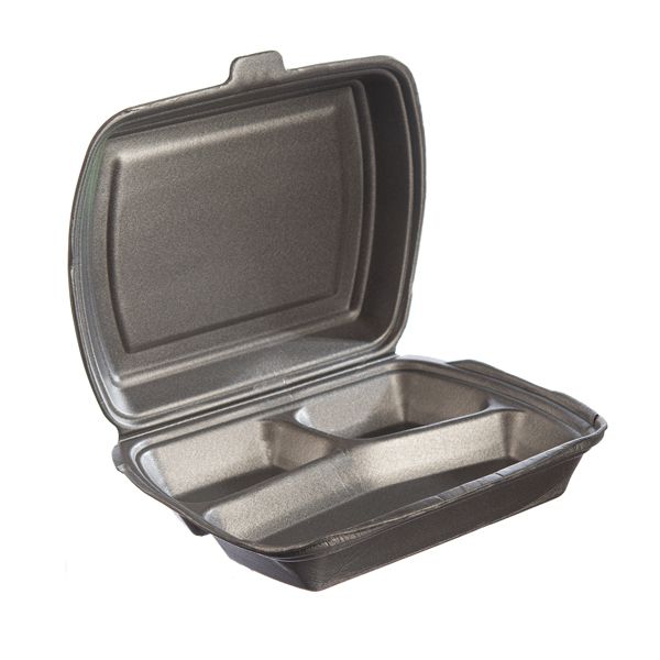 Ланч-бокс - удобный контейнер с неразъемной крышкой из вспененного полистирола, который держит стабильную температуру внутри контейнера, не позволяя пище быстро остывать или нагреваться, а также обеспечивает сохранность продуктов при транспортировке. Может использоваться под холодную и горячую пищу, соусы. Размер - 247мм*208мм*63мм. Данный ланч-бокс имеет 3 секции. Полностью отвечает гигиеническим нормам. Эта практичная упаковка широко применяется не только на предприятиях общественного питания: кафе, закусочных и ресторанах фастфуд, но и для доставки обедов в офисы и учебные заведения, а так же в ресторанах для упаковки еды навынос и для кейтеринга.