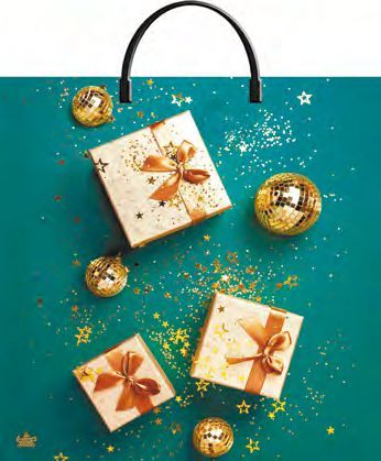 Пакет с пластиковой ручкой Золотые подарки имеет эстетичный внешний вид.