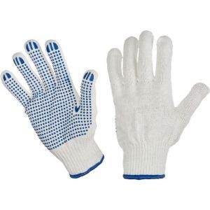 Перчатки х/б 6-ти нит. 10 кл белые ПВХ - предназначены для защиты рук от общих производственных загрязнений. Покрытие ПВХ помогает обеспечить плотный захват и предотвращает соскальзывание детали. Рабочие перчатки оптимальны для ремонтных, складских, садовых работ.