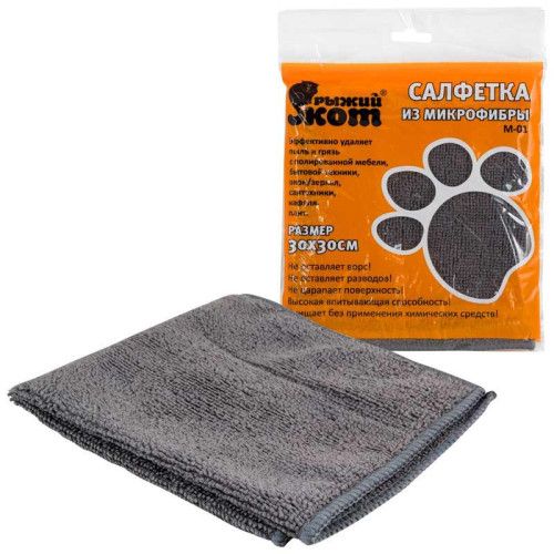 Салфетка микрофибра 30*30см универсальная графит «РЫЖИЙ КОТ»