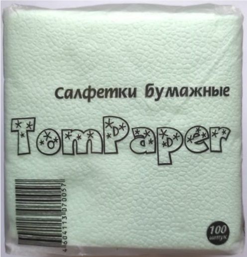 Салфетки бумажные 1сл 23*23см зеленые (100л) «TomPаper»