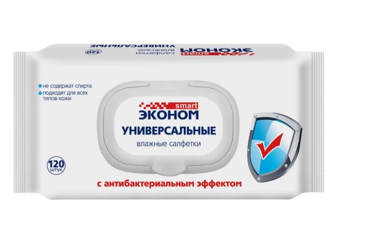 Салфетки влажные (120шт) антибактериальные эконом «Smart»